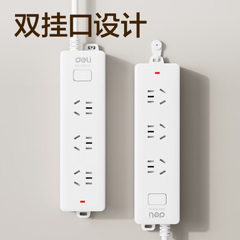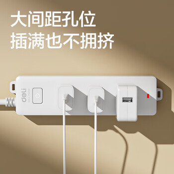 得力(deli)3C认证国标安全插座 插排/插线板/接线板/排插/拖线板 总控开关 儿童保护门 3组合孔2米 18274