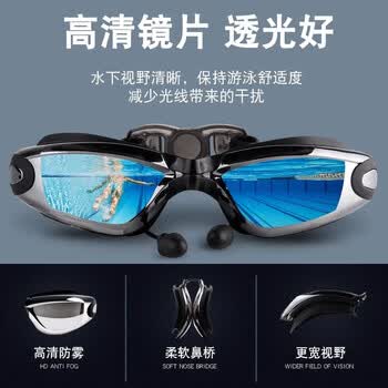 佑游泳镜泳帽高清防雾防水耳塞鼻夹眼镜泳镜五件套Z6615 电镀黑色平光