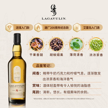 乐加维林(Lagavulin)8年 单一麦芽威士忌洋酒700ml 岛屿产区