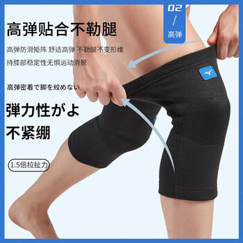 美津浓(MIZUNO)护膝保暖老寒腿中老年人膝盖关节炎半月板损伤男女1515-L黑两只