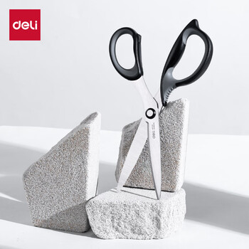 得力(deli)210mm人机造型办公剪刀 手工剪纸刀 大号生活家用剪子 黑色77760