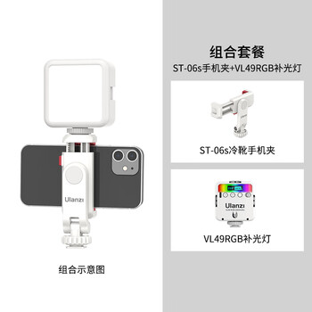 ulanzi 优篮子 ST-6S(白)冷热靴手机夹RGB补光灯套装横竖拍旋转取景翻转屏手机Vlog单反相机多功能摄影夹
