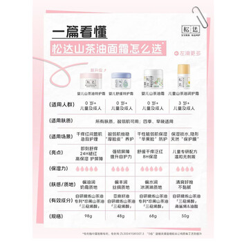松达 儿童面霜 润护霜 宝宝保湿霜 男女童补水修护霜山茶油 50g