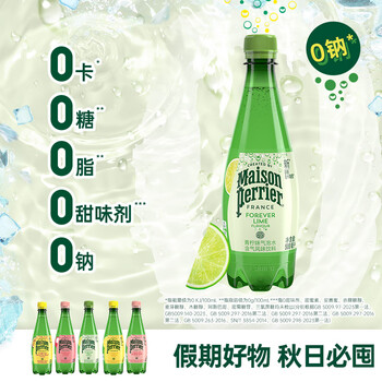 Perrier氼颂家巴黎水 进口气泡水 年货礼盒0糖0卡 青柠味矿泉水500ml*24