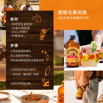 宾得宝(Bundaberg)含气干姜汁饮料375ml*6玻璃瓶装 澳州网红春日出游果汁气泡水