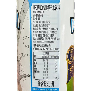 泰国进口 UFC100%纯椰子水 1L*12瓶