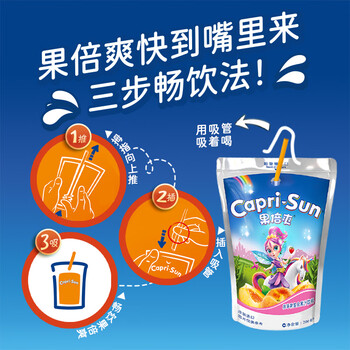 果倍爽儿童果汁饮料非果泥零食桃苹果复合果汁200ml*10袋 整箱