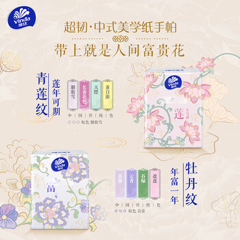 维达(Vinda)手帕纸 超韧4层7张*18包 中式美学 湿水不易破