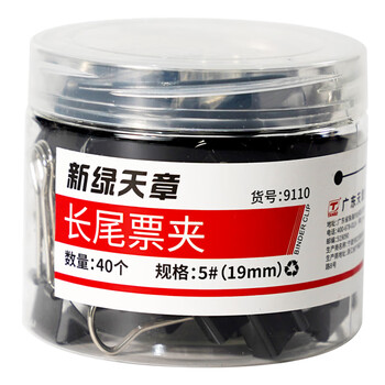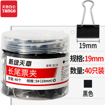 天章(TANGO)长尾夹燕尾夹子5#19MM黑色40个/筒凤尾夹金属票夹反尾夹票据夹子办公用品