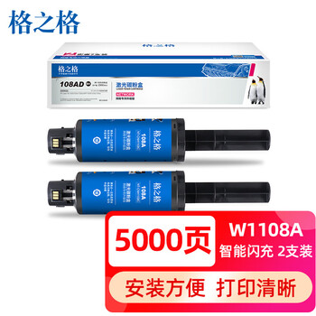 格之格W1108a粉盒 适用惠普1005w墨粉 hpns1020 1020c 1020w mfp 1005 1005c 1005w打印机闪充碳粉 5000页 黑色 2支