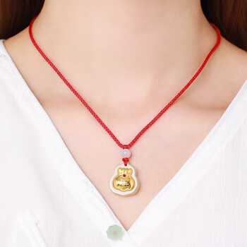 Lossot金镶玉福袋吊坠男女款镶嵌和田玉吊坠翡翠珠红绳项链宝宝生日礼物