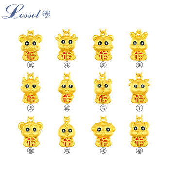 Lossot生日礼物本命年足金十二生肖黄金吊坠龙项链3D硬金福龙生肖挂坠