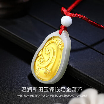 Lossot福禄吉祥金镶玉如意吊坠镶嵌和田玉挂坠翡翠珠项链生日礼物