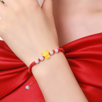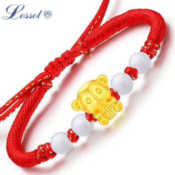 Lossot足金十二生肖猴黄金转运珠手链5D硬金猴本命年手链红绳生日礼物