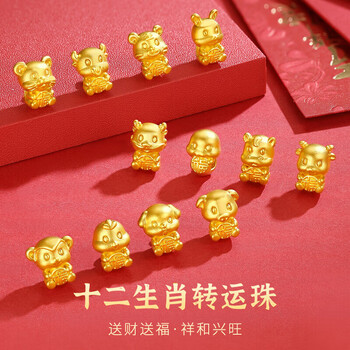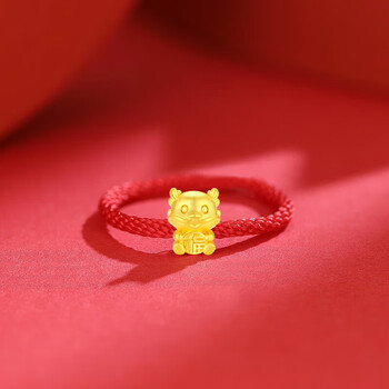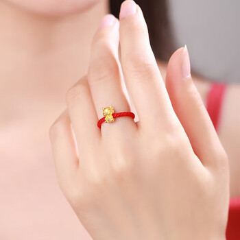 Lossot生日礼物本命年足金十二生肖龙转运珠黄金戒指女3D硬金龙编织绳