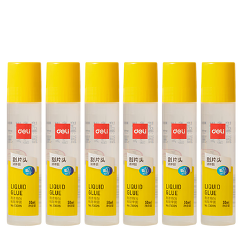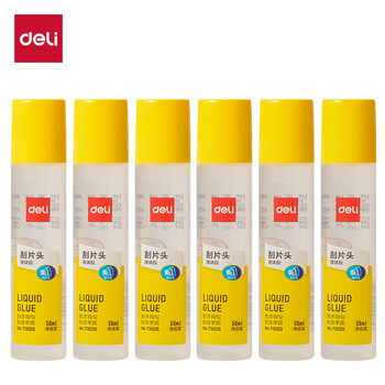 得力50ml刷片胶头高透明胶水 可水洗高粘液体胶 学生文具 开学必备学习用品 6支装 办公用品 7302S