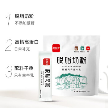 西域日记脱脂奶粉独立小包装成人奶粉低脂高钙400g高蛋白纯牛奶粉女士男士