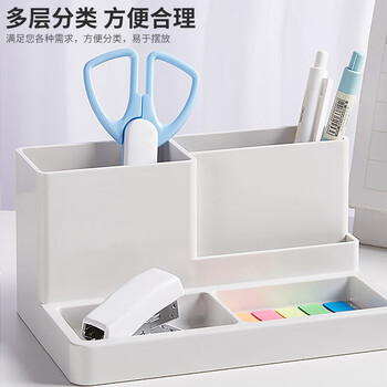 【开学必备】天章办公(TANGO)多功能笔筒五格办公用品收纳盒简约桌面储物盒子白色1个装