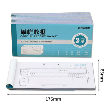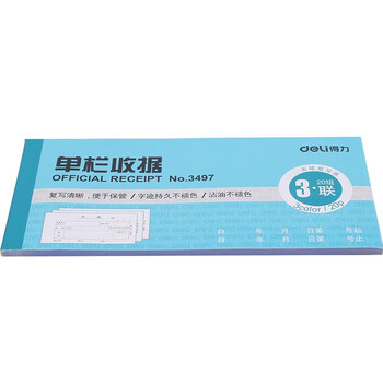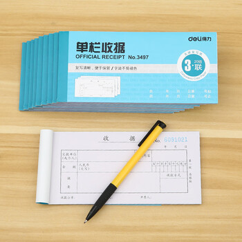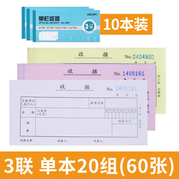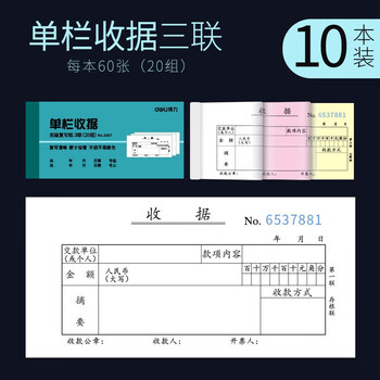 得力(deli) 无碳原纸 三联单栏收据 颜色随机10本装 财会用品 办公用品 三联单栏收据