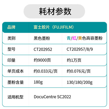 富士施乐(Fuji Xerox)SC2022CPSDA原装粉盒墨粉墨盒施乐sc2022黄色大粉CT202958约印10000张