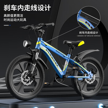 凤凰(Phoenix)铝合金儿童自行车6-15岁小学生中大童单车特斯拉一体轮蓝黄色18寸