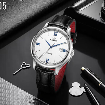 摩纹(Marvin)星品爆款瑞士手表男士石英表进口机芯商务日历腕表送礼物