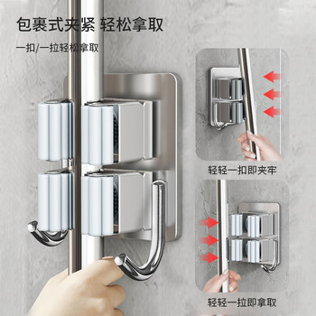 馨沛拖把挂钩不锈钢免打孔拖把夹浴室卫生间置物架架子挂钩双夹双勾