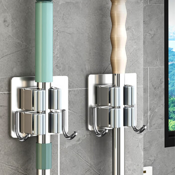 【304不锈钢】双夹双钩拖把夹(2个装)