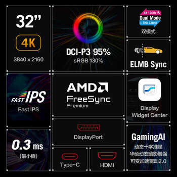 华硕ROG XG32UCG 32英寸显示器4K电竞显示器4K 160Hz双模1K 320Hz HDR400 HDMI2.1 0.3ms响应G-sync