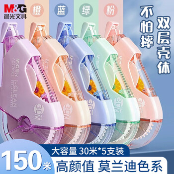 晨光(M&G)文具150M大容量双壳加厚耐摔修正带 30M*5MM学生涂改带隐形改正带 莫兰迪色系5支装