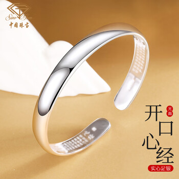 中国珠宝生日礼物送女友足银999心经银手镯银镯子送妈妈