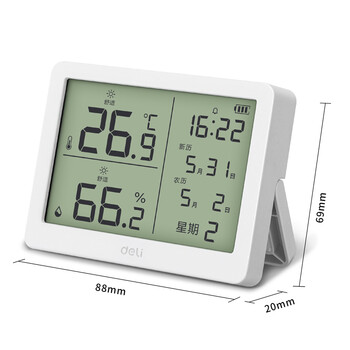 得力(deli)室内温湿度表 LCD\电子温湿度计老人儿童礼物生日礼品带闹钟功能 婴儿房办公用品 白色LE502-WH
