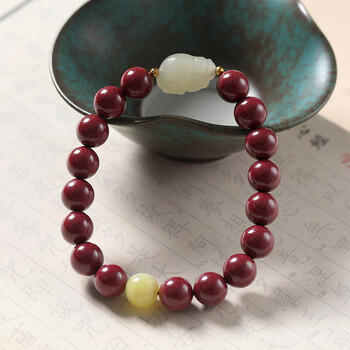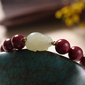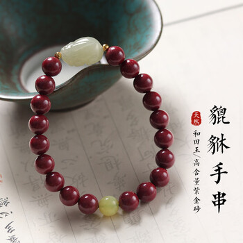 泽心雅玉朱砂貔貅手串和田玉手链高含量紫金砂本命年男女士佛珠礼物