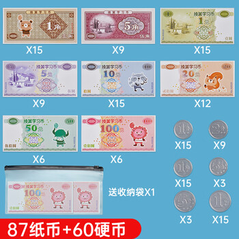 换算学习币87纸币+60个硬币(加大版)+认识人民币