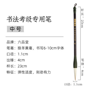 【全网低价,真便宜直播间】六品堂 书法考级专用兼毫毛笔 学生初学者入门练字楷书软笔国画笔 毛笔-书法考级专用笔 兼毫 黑檀 中号