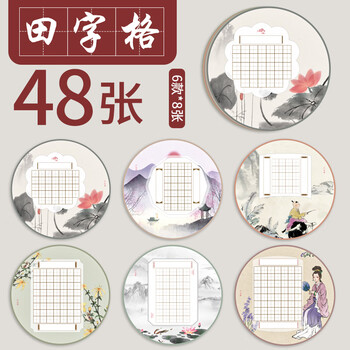 六品堂硬笔书法作品纸圆形中国风比赛专用纸小学生古诗词田字格练字本