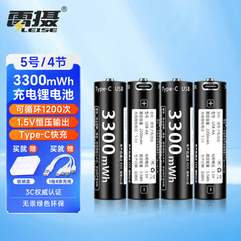 雷摄(LEISE)充电电池 5号/五号/Type-C充电锂电池3300mWh(4节)装1.5V恒压大容量 适用:话筒玩具游戏手柄遥控器