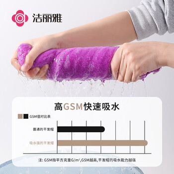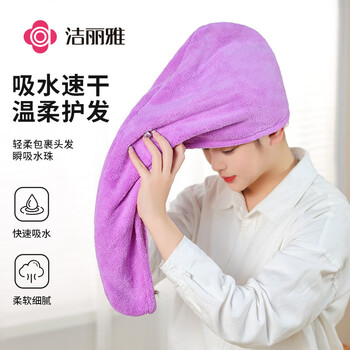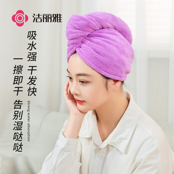洁丽雅(Grace)干发帽 柔软强吸水干发帽 65x25cm 雪花绒包头速干擦头毛巾 紫色
