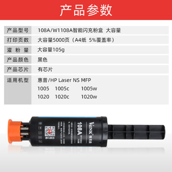 V4INK 108a粉盒大容量适用惠普1005w墨粉W1108A墨粉1005w粉盒1005c粉盒HP Laser NS MFP 1005c 1005w 1020c 1020w