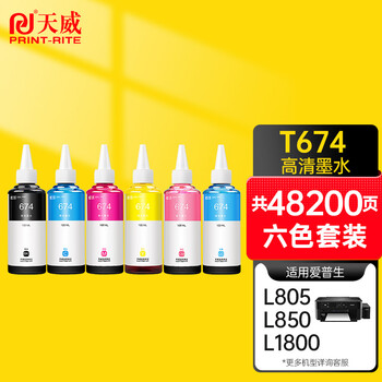 天威 674墨水100ml 六色套装 适用爱普生L805 L850 L1800 L810 L801 L360 L101 L301打印机 T6741-T6746