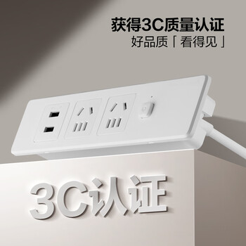 公牛(BULL)嵌入式插座/插线板/插排/排插/接线板 多功能桌面/家具 黑色2位+2USB 总控1.8米 GNQ-Q1021UH