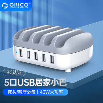 奥睿科(ORICO)多口充电器 40W大功率5口USB苹果华为手机ipad充电站带支架设计 DUK-5P-WH
