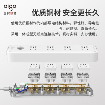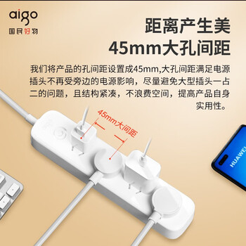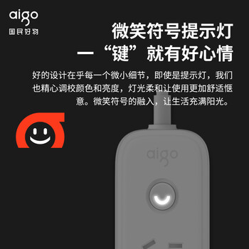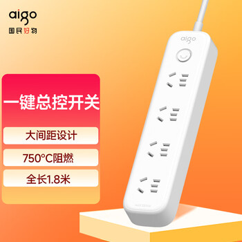 爱国者(aigo)插座/插排/插线板/接线板/拖线板/排插 4位总控全长1.8米 独立开关儿童保护45MM大孔间距AC0401