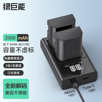 绿巨能(llano)DMW-BLF19E相机电池 适用DMC-GH3 GH5 GH4 DC-G9LGK等充电套装 电池*2充电器*1