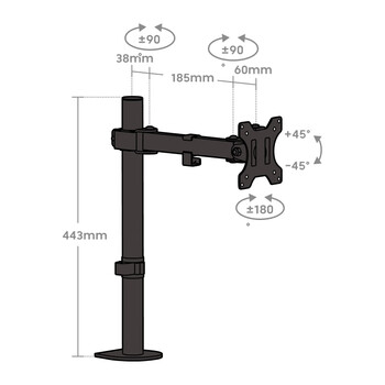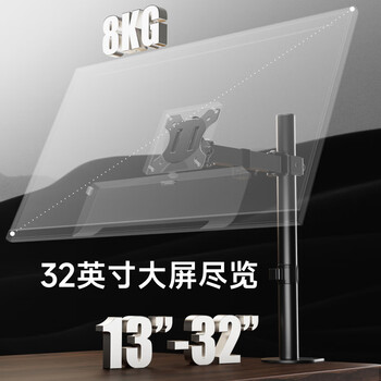 Brateck北弧 显示器支架 机械臂 电脑支架桌面夹式底座 屏幕升降悬空托增高架E230黑13-32吋 立式旋转竖臂