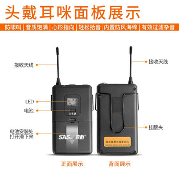 适配器*1、接收器*1、腰包*8、头戴线*8、彩盒、电源、音频线、天线、防滑圈、防风棉、电池、说明书、合格证、保修卡