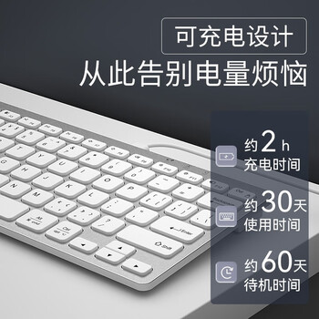 B.O.W航世 HD098C 超薄便携静音双模键盘78键 无线蓝牙妙控外接ipad电脑手机平板充电办公键盘 白色