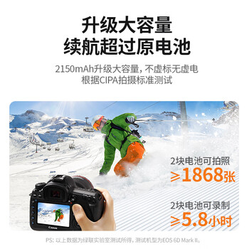 绿联3C认证LP-E6NH相机电池适用佳能EOS R62 R5 R6 R7 90D 80D 70D 7D2 60D 6D2 5D3 5D2 5DMark 5D4