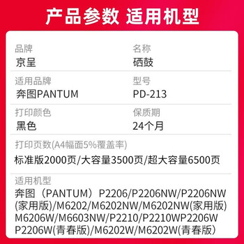 京呈适用奔图m6202nw硒鼓p2206nw碳粉盒pantum PD-213墨盒P2206 p2210w M6603NW激光打印复印机晒鼓长久芯片