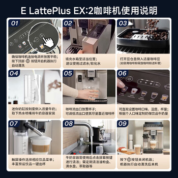 德龙(Delonghi)咖啡机 家用全自动咖啡机进口 意式现磨自动奶泡卡布奇诺迷你奶缸全彩触屏 E LattePlus EX:2 礼物